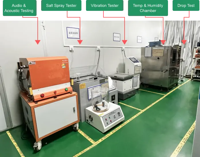 To ensure every PCBA product delivers high quality and reliable performance, we operate an advanced laboratory with comprehensive testing equipment. Our lab features audio & electroacoustic automated testing, salt spray testers, vibration testers, temperature & humidity chambers, and drop test machines. These facilities cover all testing requirements from R&D to mass production.