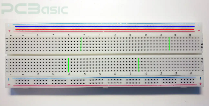 The specifications of different breadboards may vary, but the design always remains the same. The breadboard layout includes two areas: terminal strips and bus strips.