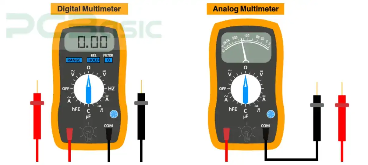To measure volts (V), amps (A), and ohms (Ω), you use a digital multimeter (DMM). It has precision, but it displays values on an LCD screen. Current runs from 10µA to 10A and voltage ranges from 0.001V to 1000V. It ranges over 0.1Ω–50MΩ. These models often auto-range, switching to the right scale for you.