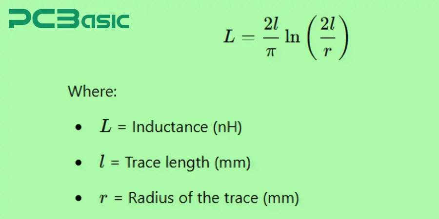 For a long, straight PCB trace, the inductance is estimated using: