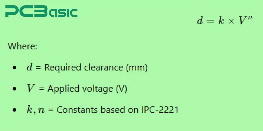 The required clearance distance between PCB traces is given by: