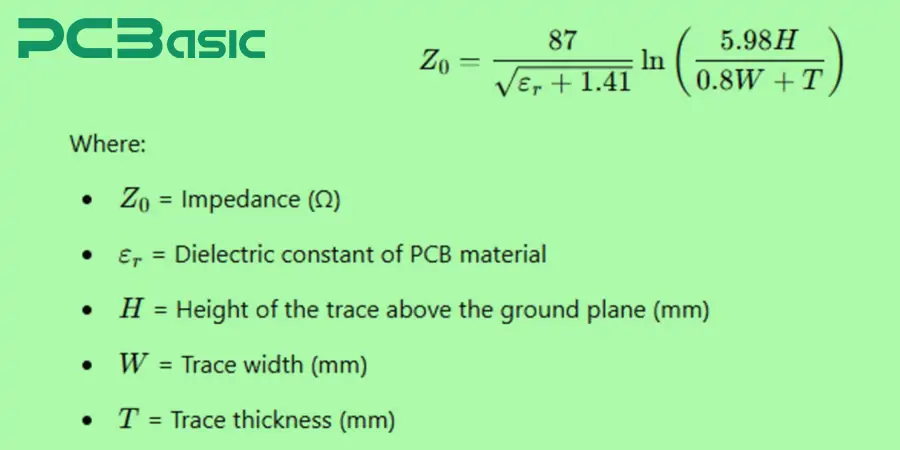 For a conventional microstrip configuration (a signal trace on a ground plane), the impedance is: