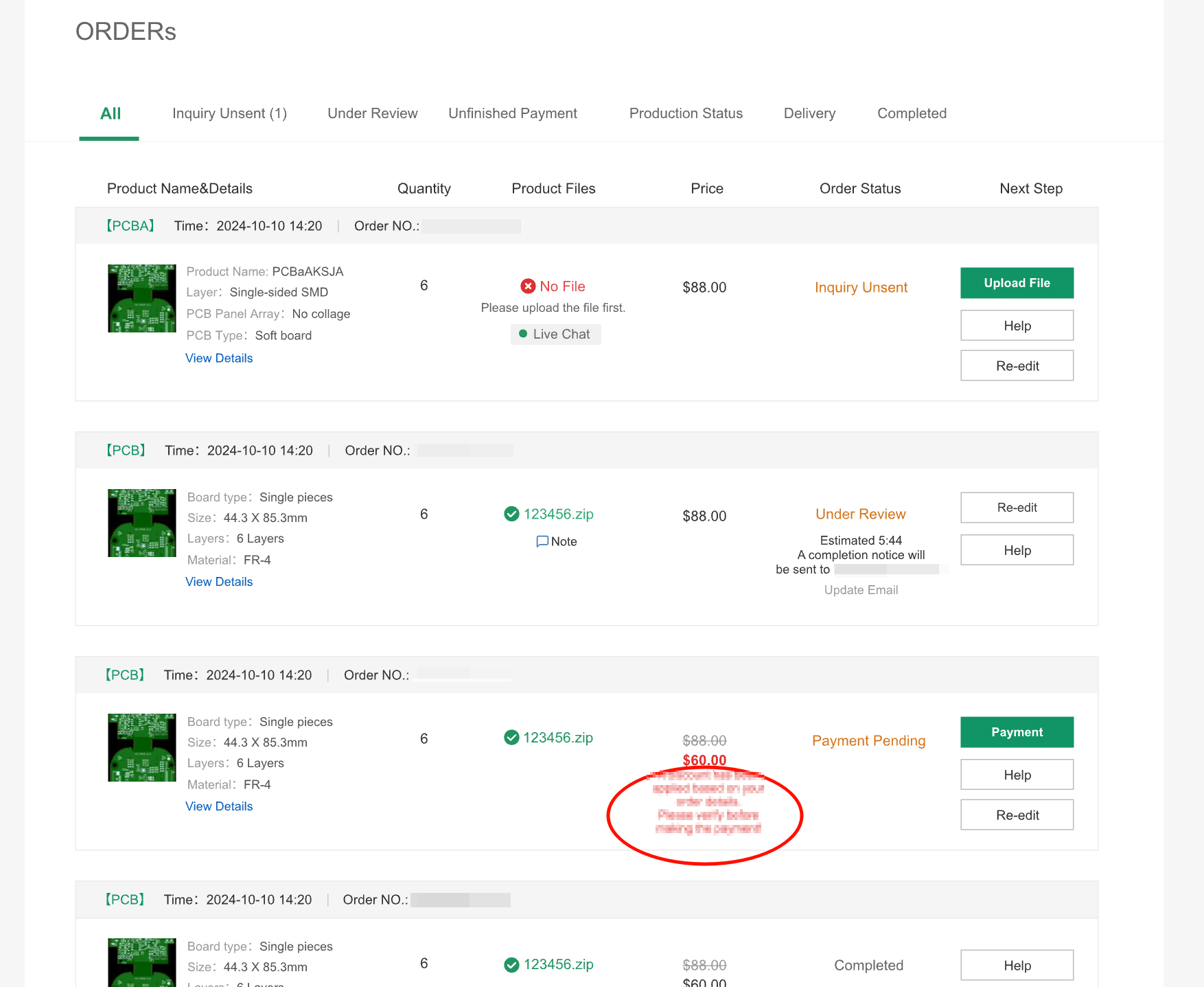 Several factors can affect the price, such as mismatched parameters, incorrect file uploads, or panel issues. You can view the reason for the price change under the price section of the successfully reviewed order.