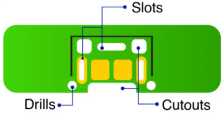 Sometimes, customers notice that cutouts or slots are missing from their finished PCB design data during engineering review. This usually happens because the cutout or slot shapes were drawn on the silkscreen layer instead of the proper mechanical or outline layers.