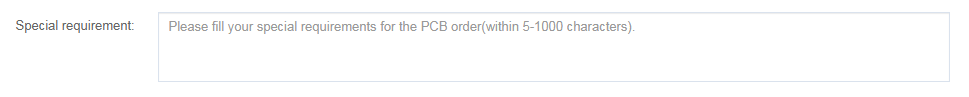 • You may also add a note in the “Other Special Request” section to remind PCBfast.
