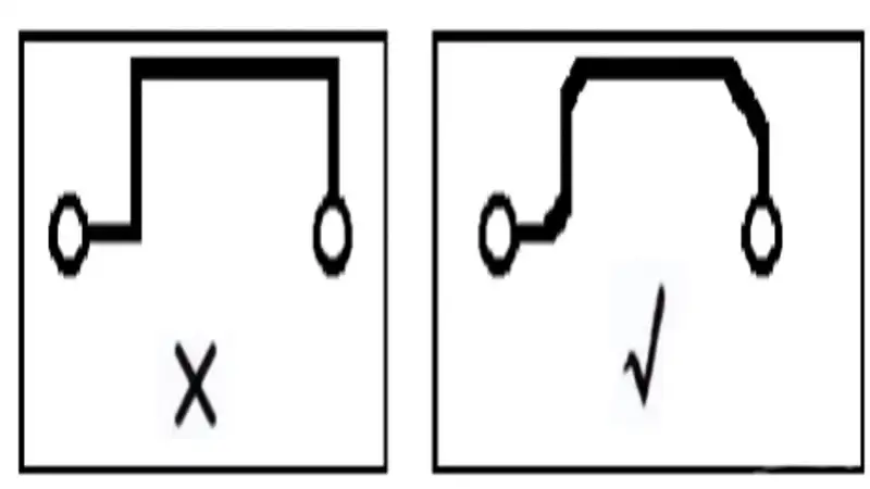In PCB design, sharp corners and right angles should be avoided. Such structures can cause unnecessary electromagnetic radiation and lead to poor manufacturability during production. PCBfast’s DFM (Design for Manufacturability) review process automatically detects and optimizes these areas to improve both signal performance and production yield.