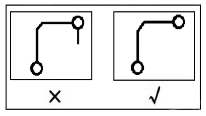 Dangling or open-ended traces are generally not allowed. These can create an “antenna effect”, increasing susceptibility to EMI (electromagnetic interference). PCBfast uses ERC (Electrical Rule Check) and DFM inspection to ensure no open loops exist before manufacturing, preventing potential reliability issues.